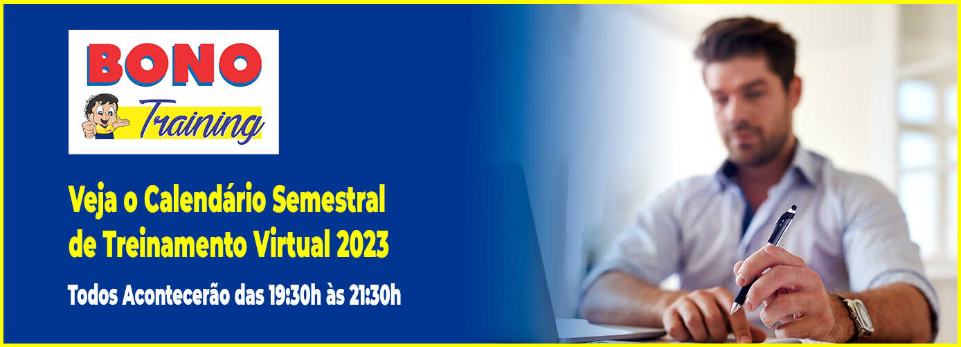 Bono Training Sep 27, 2022 Voltar / Bono Training A Bonos Pneus, é uma das maiores Redes de Franquias do setor automotivo, com mais de 30 anos no mercado. O Bono Training tem como objetivo, auxiliar e capacitar os profissionais de suas franquias. SETOR TELEVENDAS TREINAMENTOS DISPONÍVEIS